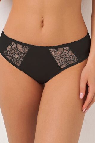 Трусы-слипы со средней линией талии. Передняя часть изделия украшена элементами из кружева. Срез ножек обработан мягкой эластичной лентой. Внимание: европейские размеры! Для определения российского размера необходимо прибавить 6!