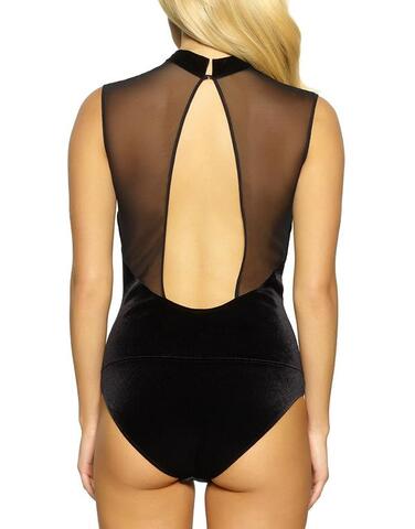 Изысканное боди из бархата и сетки с трендовым графическим дизайном! Уместно не только как нижнее белье, но и как верхняя одежда. Полуоткрытая спина с вырезом-капелька. Ластовица с застежкой на кнопках.
