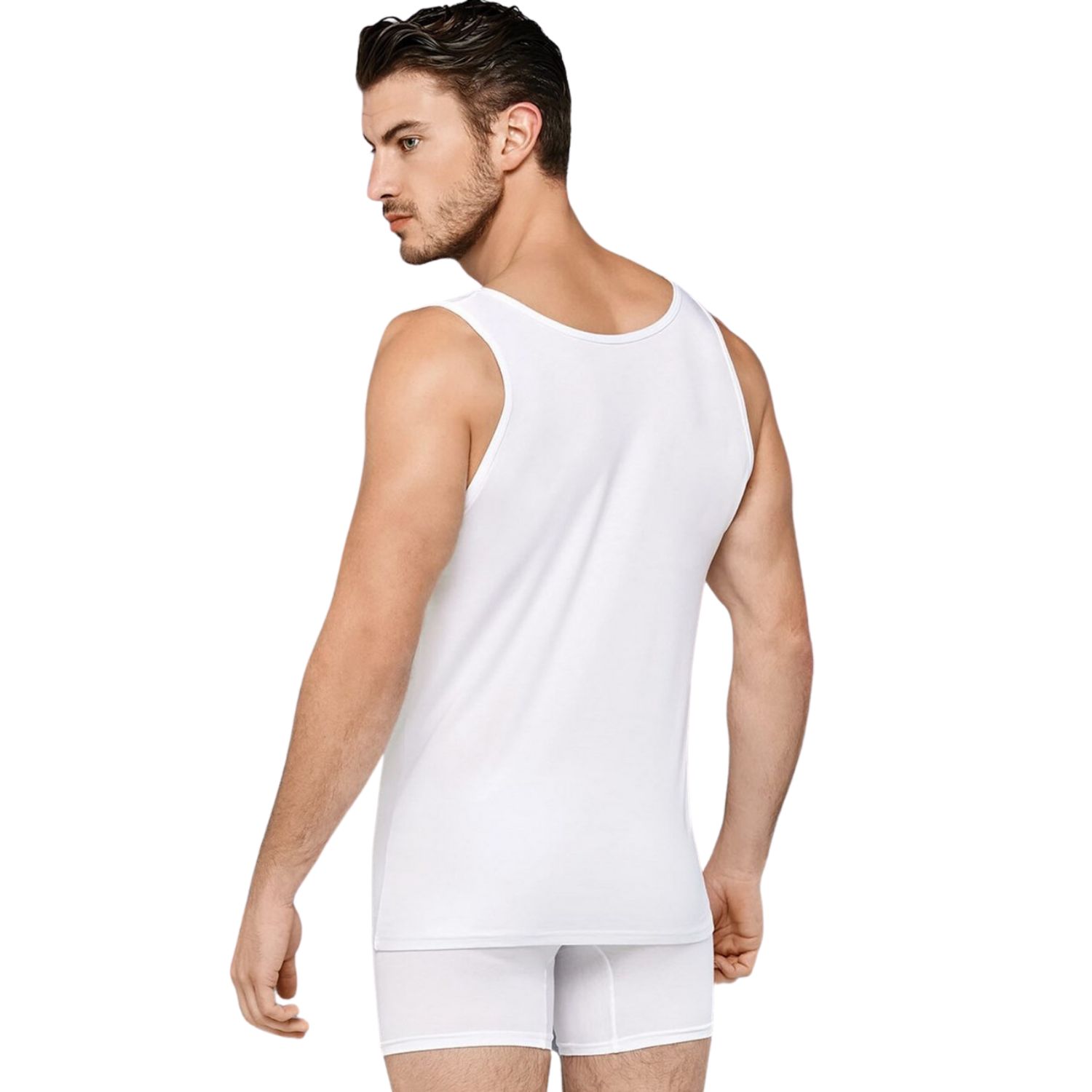 Классическая мужская майка с круглым вырезом. Идеальное сочетание натуральных волокон обеспечивает максимум комфорта как для повседневного ношения, так и для занятий спортом.