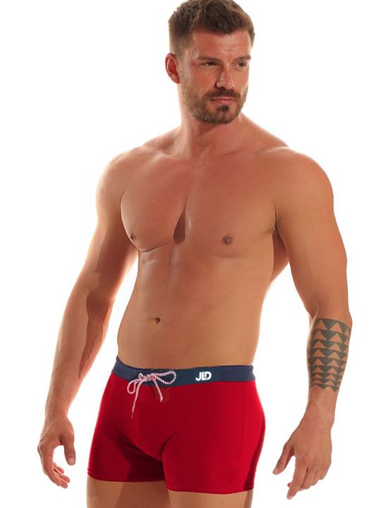 Мужские пляжные боксеры со средней линией талии. Пояс регулируется плетеным шнурком.