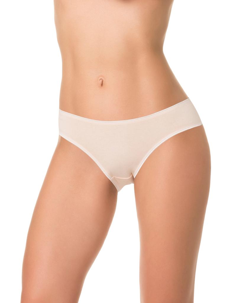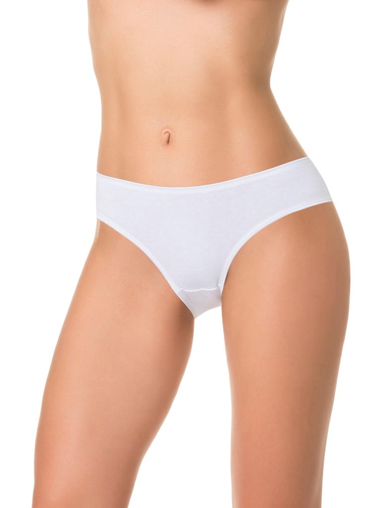 Трусы со средней линией талии, выполнены из мягкого однотонного хлопка со спандексом. Ножки и талия обработаны эластичной тесьмой в цвет изделия.