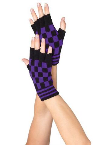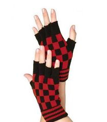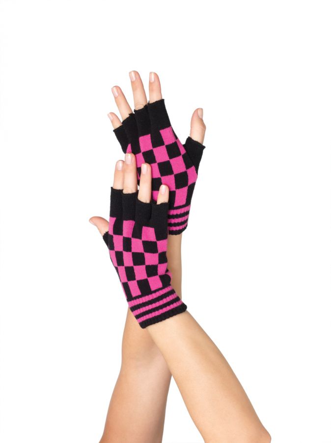 Акриловые перчатки шахматной расцветки с открытыми пальчиками.
