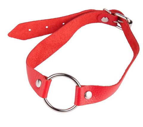 Ремешок изготовлен из натуральной кожи. Пряжка и кольцо никелированные. Размер универсальный. Диаметр кольца - 4,5 см.