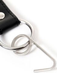 Кляп - крючок. Два крючка удерживают рот в улыбке, что бы ни происходило. Крючки соединены кожаным ремешком с застежкой.