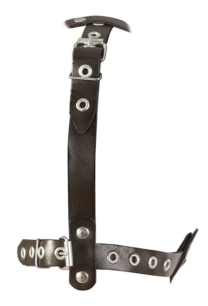 Молчите и просто делаете свое дело. Регулируемые ремни на открытой кожаной маске с красным пластмассовым шариком на внутренней части. Диаметр шарика - 3,5 см.