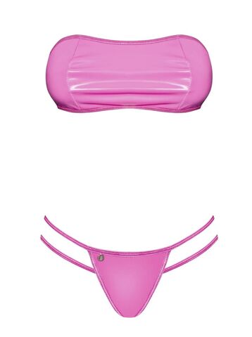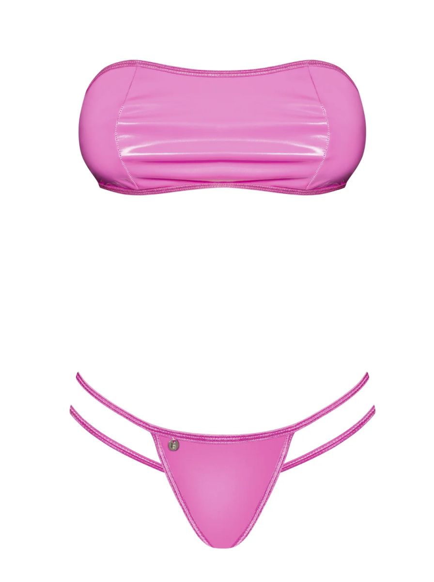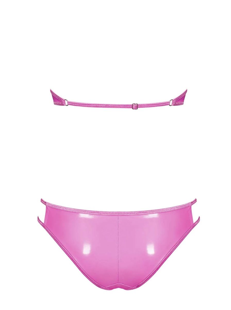 Кокетливый комплект нижнего белья Lollypopy выполнен из глянцевого эластичного материала имитирующего кожу, состоит из бюстгальтера-бандо без бретелей и трусиков. В комплекте: бюстгальтер, трусики.