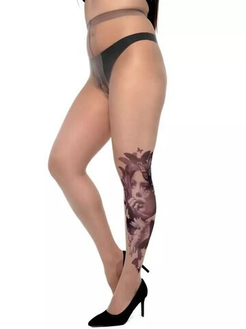 Колготки plus size с женственным принтом на левой ножке. Принт не стирается, не выгорает со временем. Можно стирать в стиральной машине. Крепкие, подойдут на рост от 145 до 180 см.