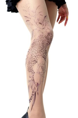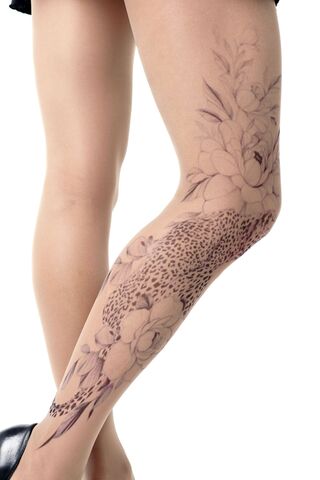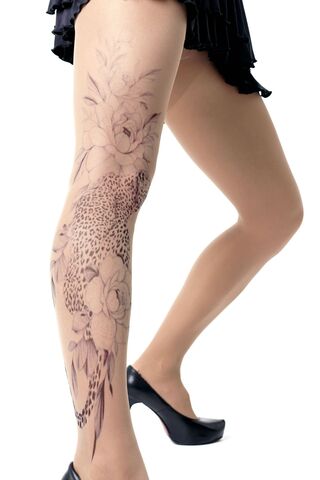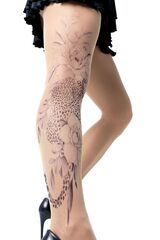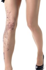 Колготки с эффектом тату. Принт не стирается, не выгорает на солнце, не пачкает кожу. Можно стирать в стиральной машине. Колготки матовые. Плотность - 40 ден.