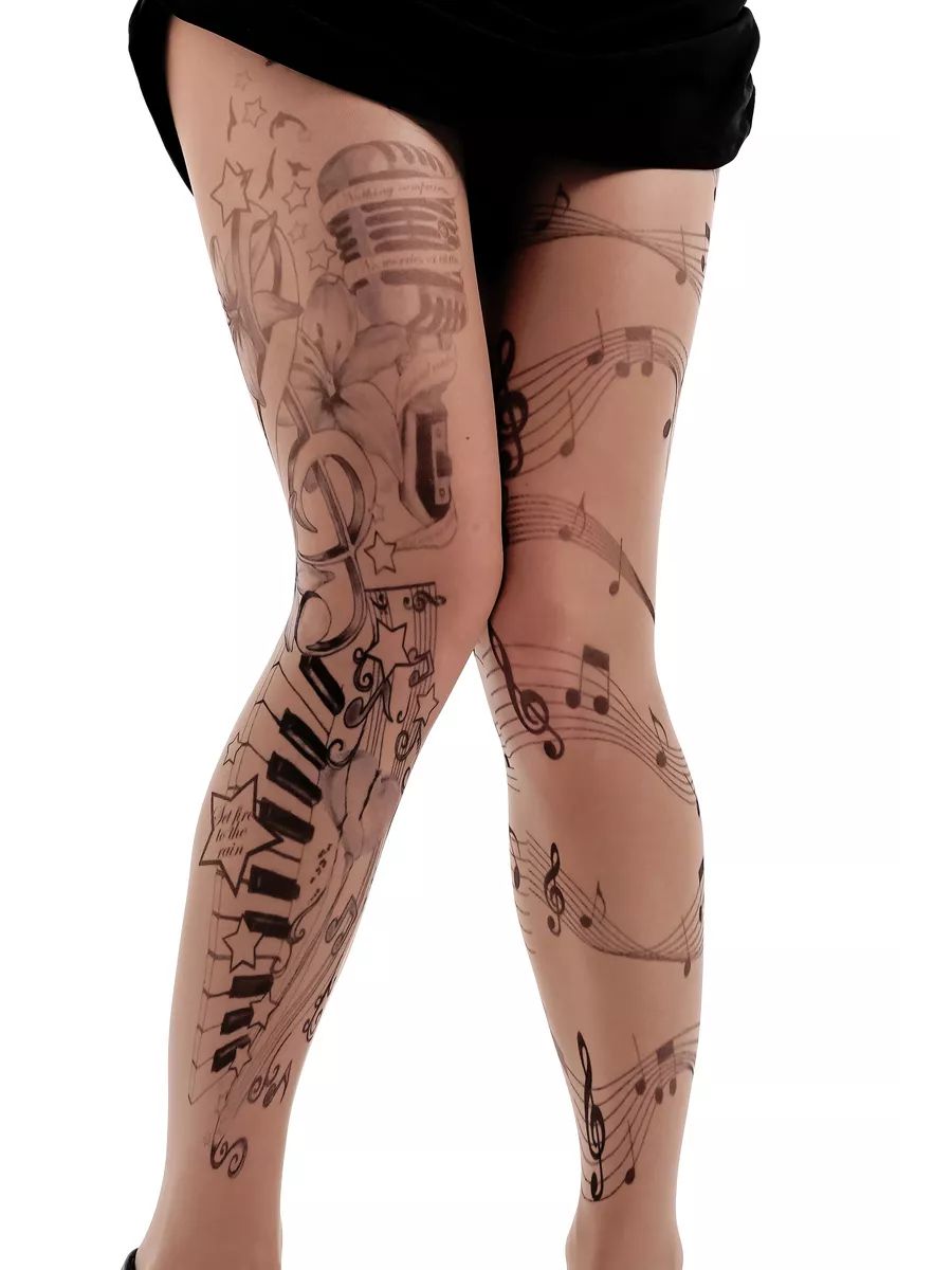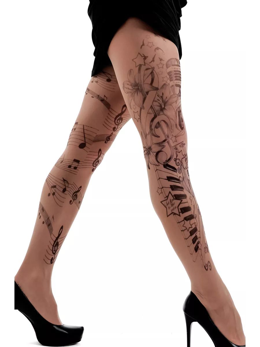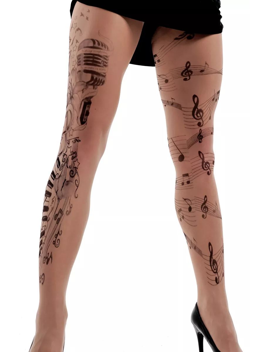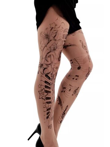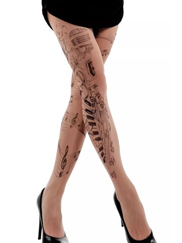 Колготки с принтом в виде музыкальных инструментов и нот. Принт не стирается, не выгорает со временем. Можно стирать в стиральной машине. Крепкие, подойдут на рост от 145 до 180 см. Плотность - 40 ден.