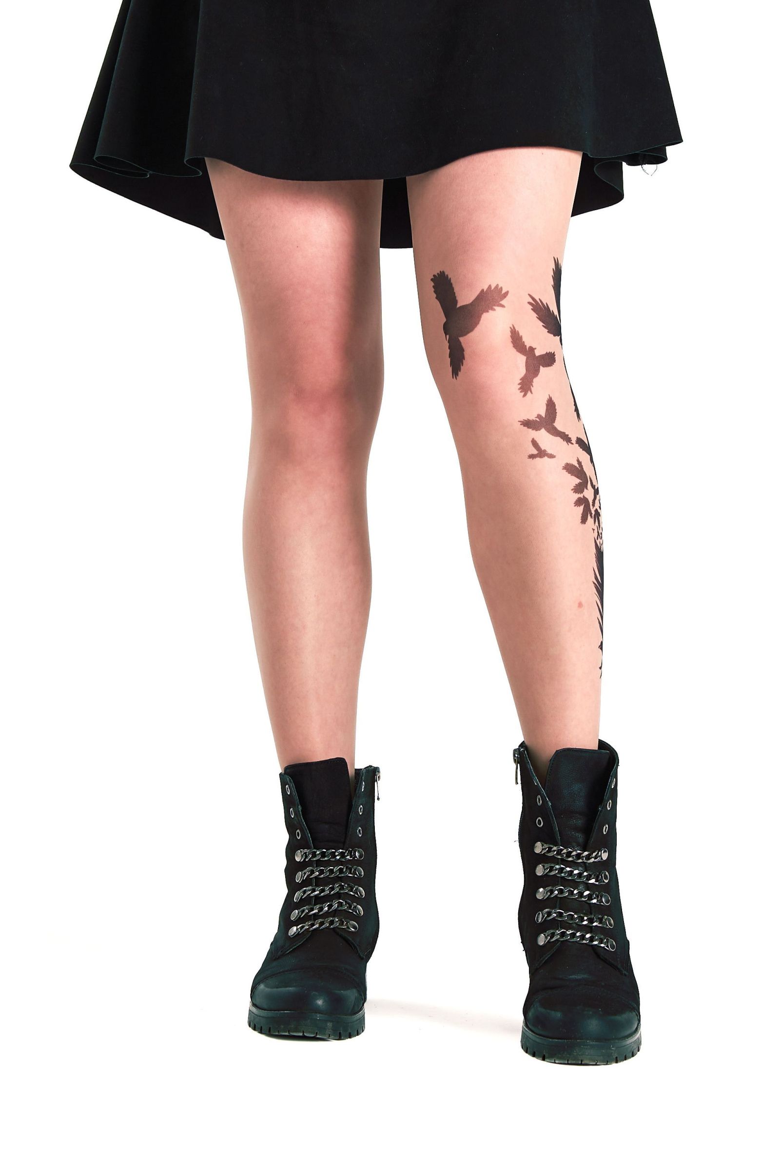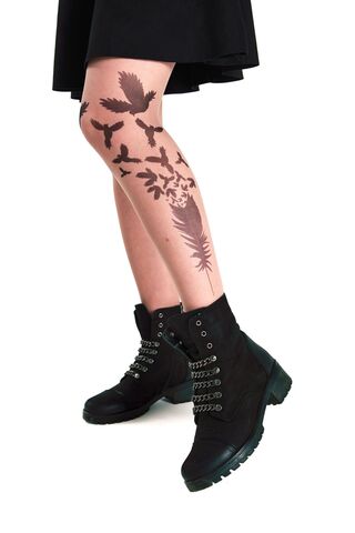 Колготки с принтом в виде пера и летящих птиц