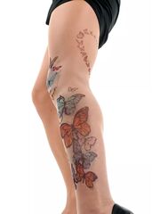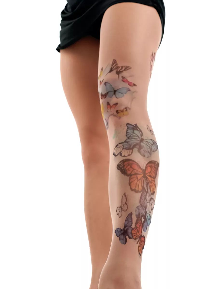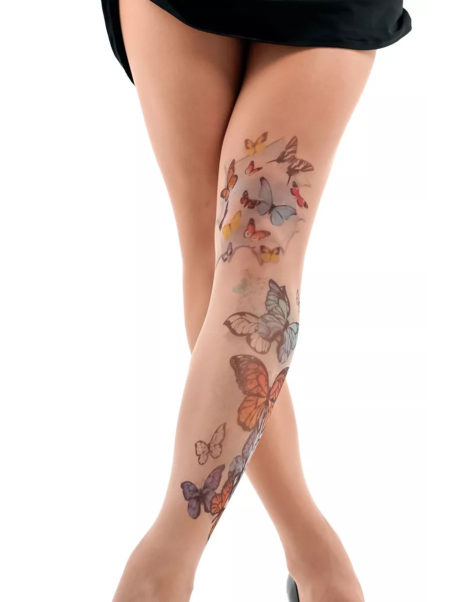 Колготки с принтом в виде цветных бабочек. Принт не стирается, не выгорает со временем. Можно стирать в стиральной машине. Крепкие, подойдут на рост от 145 до 180 см. Плотность - 40 ден.