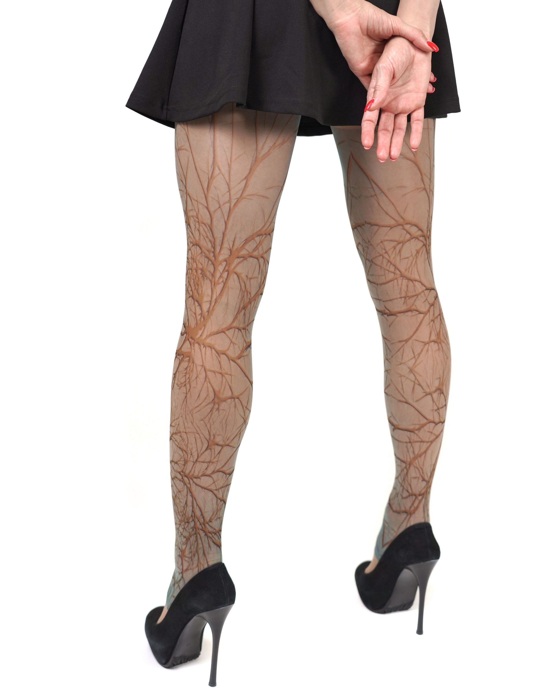 Колготки с принтом в виде ветвей. Принт не стирается, не выгорает со временем. Можно стирать в стиральной машине. Крепкие, подойдут на рост от 145 до 180 см. Плотность - 40 ден.