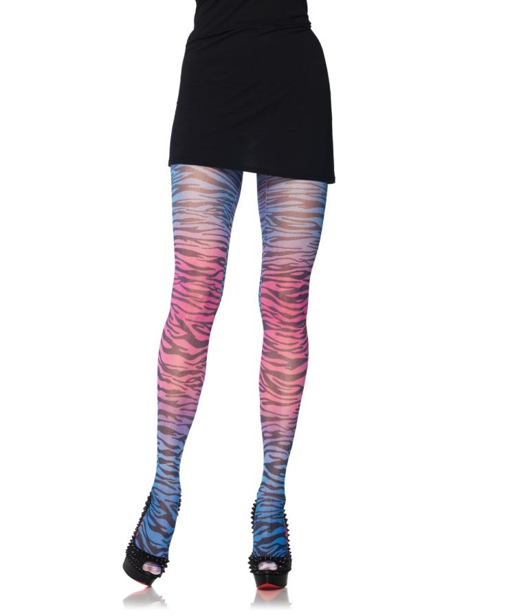 Колготки с узором зебры в радужном исполнении.