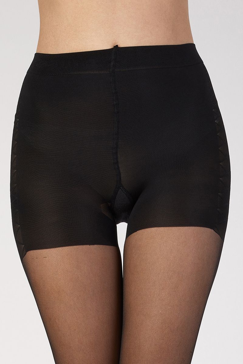 Колготки с утяжкой живота и бедер; полностью сформированные, шортики украшены боковым плетением, имитирующим шнуровку, красивое плетение, плоский шов, ластовица из хлопка . Плотность - 15 ден.