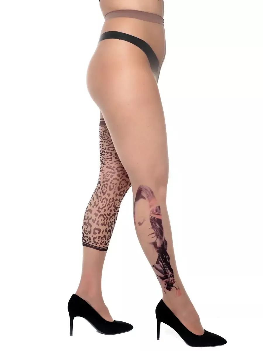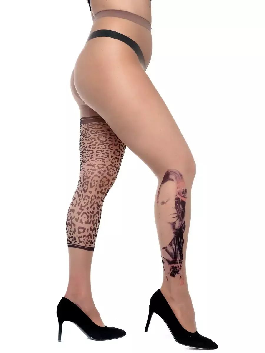 Колготки +size с леопардовым принтом с одной стороны и девушкой с другой