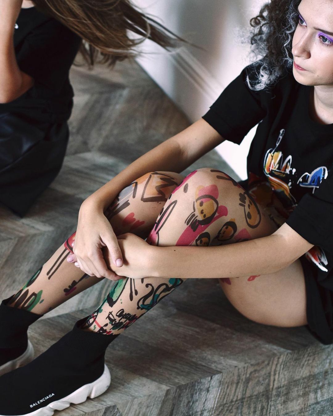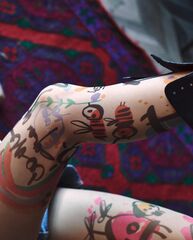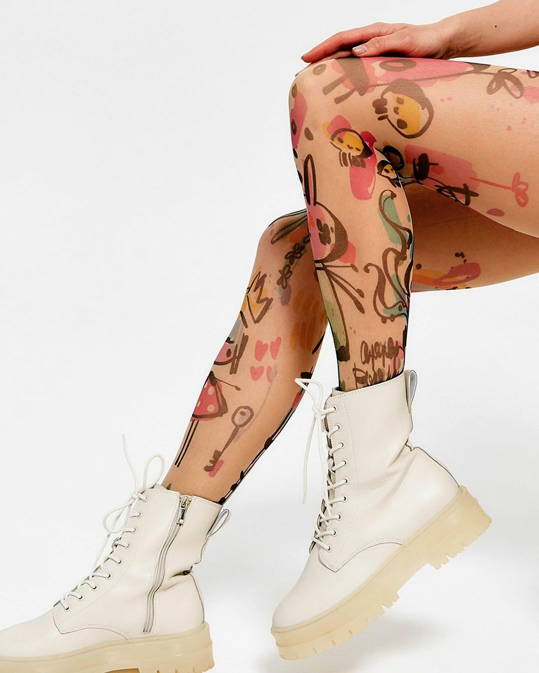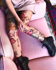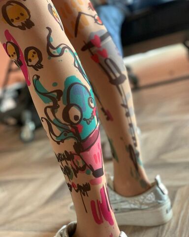 Колготки с эффектом тату. Принт не стирается, не выгорает на солнце, не пачкает кожу. Можно стирать в стиральной машине. Колготки матовые. Плотность - 40 ден.