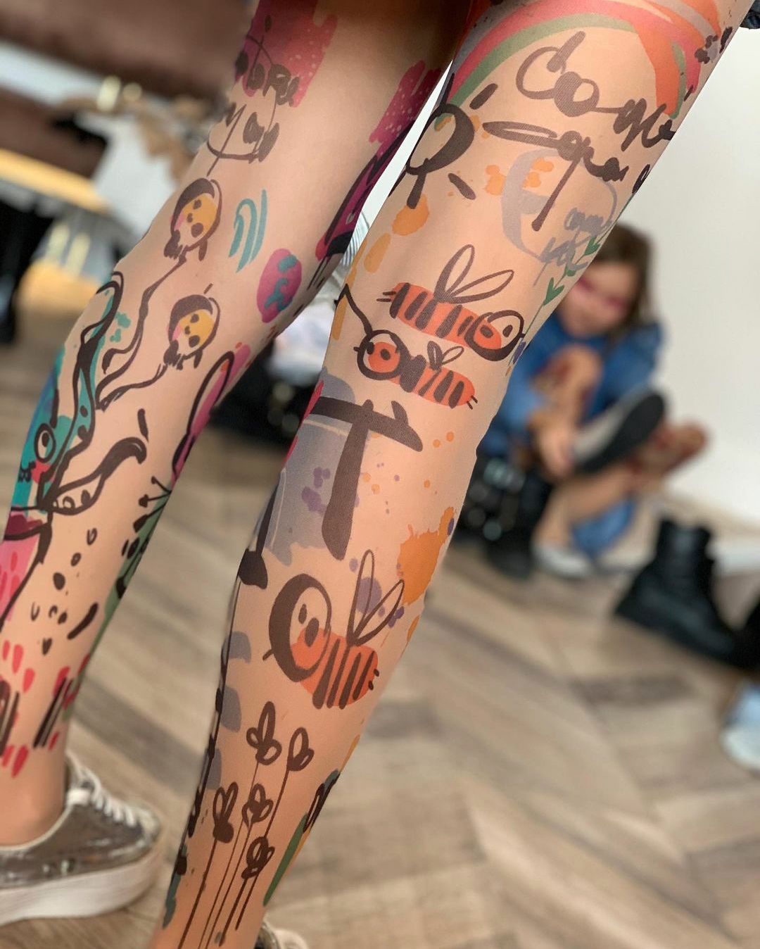 Колготки +size с принтом в виде детских рисунков