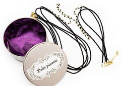 Утонченное колье на все тело. Из черного агата и металла цвета золота. Украшение для красивой ночи любви, восхитительно смотрится на обнаженной женской фигурке. Родированный металл, безупречное исполнение. Металлическая коробочка-шкатулка. Потрясающе красивая коллекция аксессуаров для спальни от Dolce Piccante. Лимитированный тираж. Размеры: