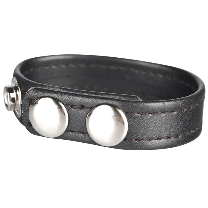 Эрекционное кольцо из качественной искусственной кожи на металлических клепках. Кольцо можно надевать как отдельно на пенис, так и одновременно на пенис и мошонку.