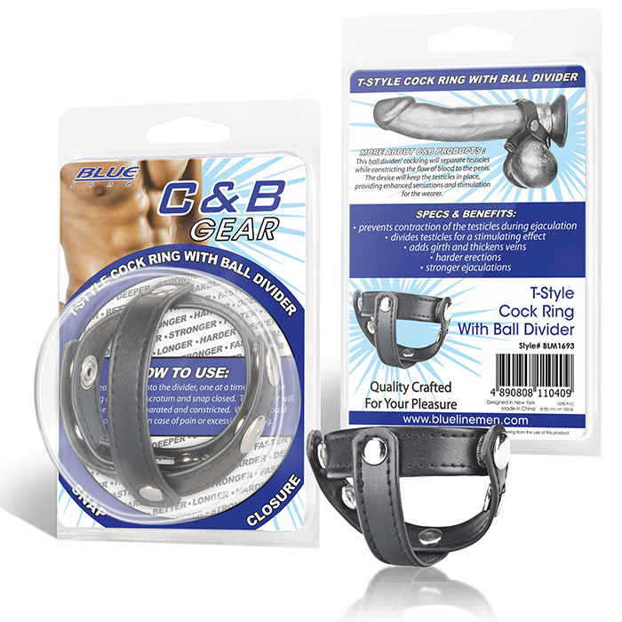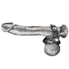 Эрекционное Т-образное кольцо из качественной искусственной кожи, зажимающее пенис и мошонку одновременно, а также разделяя яички.