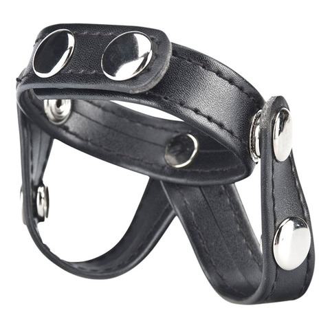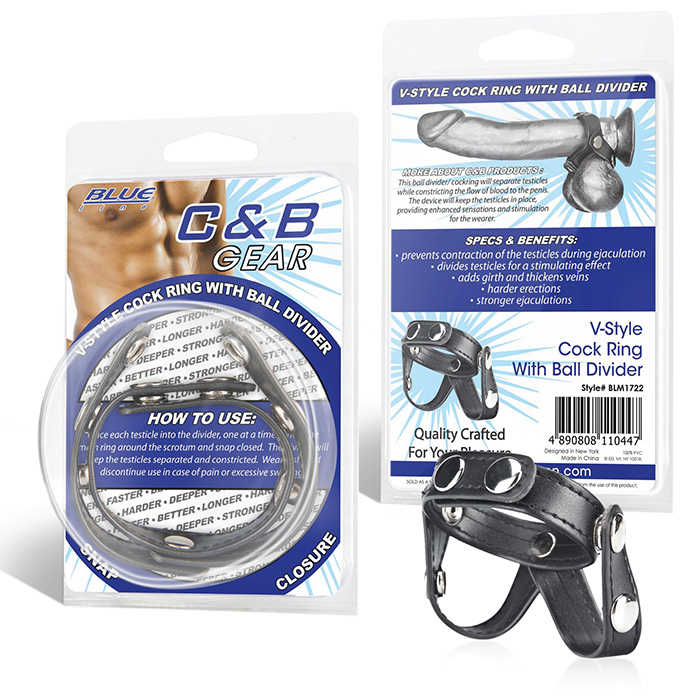 Эрекционное V-образное кольцо из качественной искусственной кожи, зажимающее пенис и мошонку одновременно, а также разделяя яички. Подобное кольцо предотвращает сокращение мошонки во время эякуляции, стимулирует яички, а также пролонгирует эрекцию, добавляет дополнительный объем пенису, утолщая вены, и усиливает оргазм.