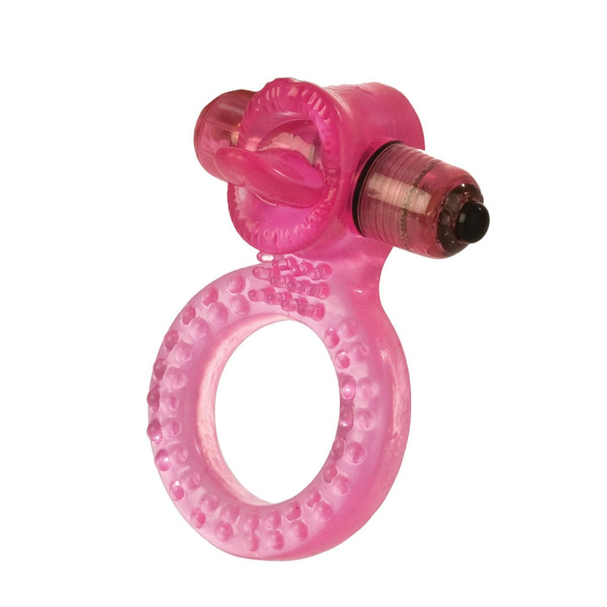 Эрекционное водонепроницаемое виброкольцо из мягкого и хорошо тянущегося материала с вибрирующим язычком для клитора партнёрши подарит обоим партнёрам удивительное наслаждение! Вибрация имеет три скорости. Батарейки в комплекте.