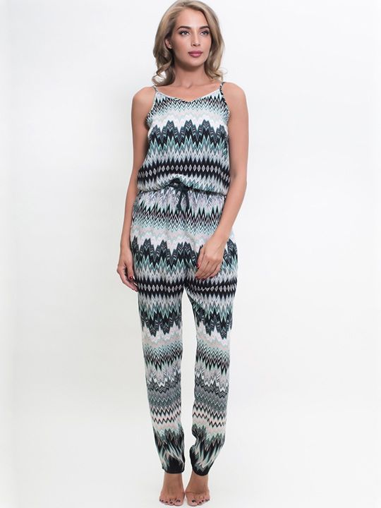 Комбинезон из вискозной ткани, вверху на бретельках.