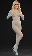 Кэтсьюит из мелкой сетки, с вырезом под горло спереди, и глубоким вырезом на спине. Вырезы в районе интимной области.