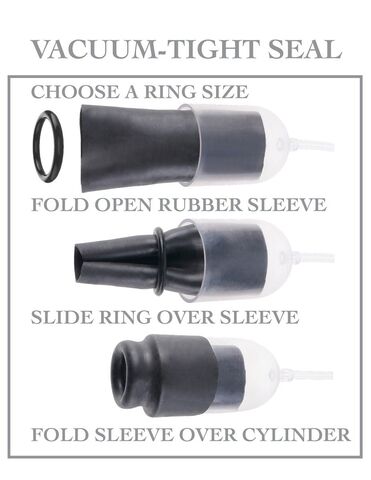 При каждом сжатии шарика насоса медицинского типа мягкий резиновый рукав цепляется за ваше мужское достоинство и скользит вверх и вниз с каждым нажатием. Сначала выберите размер кольца, сдвиньте кольцо над рукавом, сверните рукав над цилиндром насоса и наслаждайтесь вакуумным уплотнением вокруг головы. Обязательно используйте много лубриканта для дополнительного увлажнения, дополнительных диких ощущений! В комплекте: медицинский насос из ПВХ, сверхширокий рукав из ПВХ, прочный ABS-цилиндр, позрачная и прочная вакуумная трубка, 3 силиконовых эрекционных кольца увеличивающегося диаметра, маска на глаза, лубрикант и очиститель для игрушек.