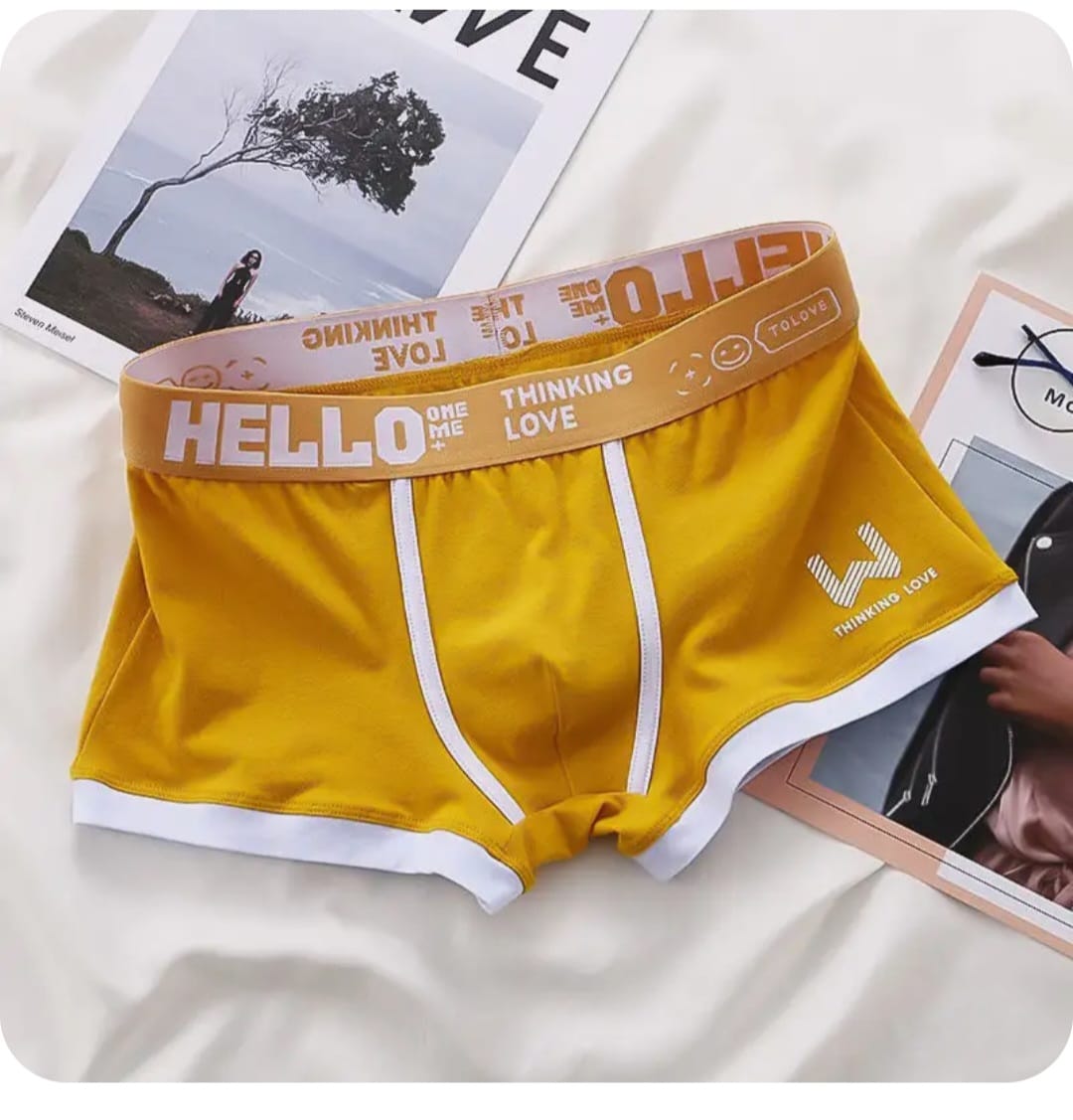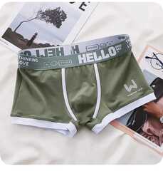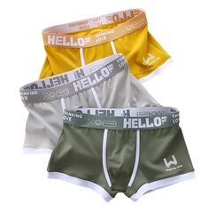 Комплект из 3 мужских трусов-боксеров: желтых, серых и зеленых.