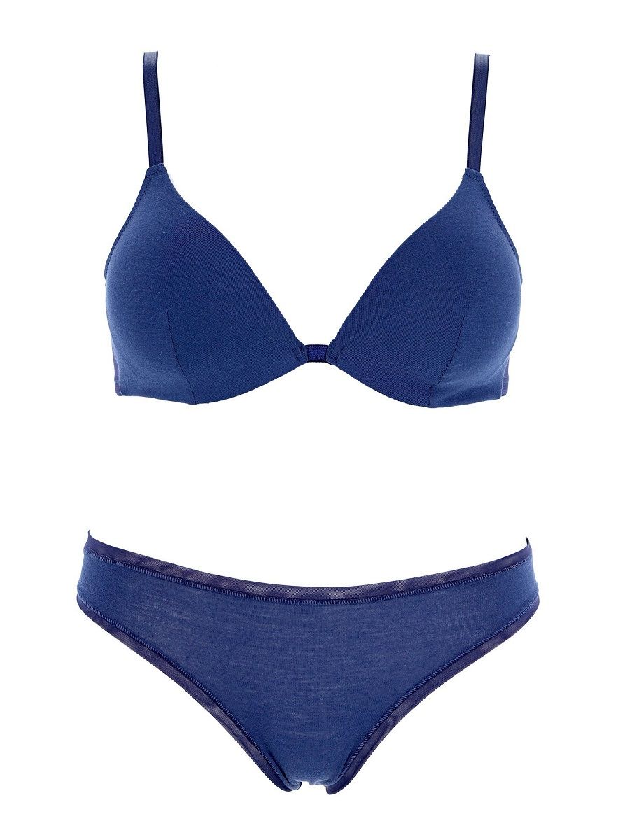 Комплект из вискозы с эластаном: бюстгальтер без каркасов с поролоновым уплотнением в чашках и трусы по бедрам фасона бразилиано. Во всех размерах полнота чашки бюстгальтера B. В комплекте: лиф, трусики.