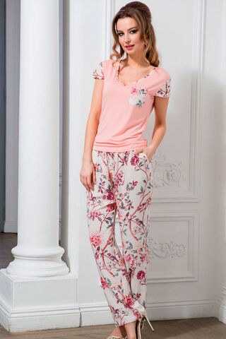 Комплект с брюками Paradise. Майка с короткими рукавами выполнена из трикотажного полотна. Майка декорирована кармашком и рукавами, выполненными из принтованной ткани. Брюки выполнены из принтованного хлопкового полотна с добавлением бамбука. В комплекте: майка, брюки.