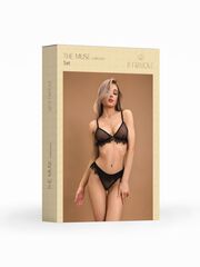 Этот комплект нежного бра и трусиков-бразилиана выполнен из изысканного гипюра с легким геометрическим узором, который придает изделию элегантность и тонкость. Снизу лифа расположено струящееся французское кружево-шантильи с ресничками, которое добавляет кокетства и чувственности образу. Такое же кружево украшает верх трусиков, создавая эффект короткой юбочки и придавая комплекту нежность и женственность. В комплекте: бюстгальтер, трусики.