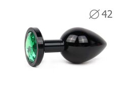 Коническая черная анальная втулка с зеленым кристаллом - 9,3 см.