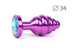 Коническая ребристая фиолетовая анальная втулка с голубым кристаллом - 8 см.