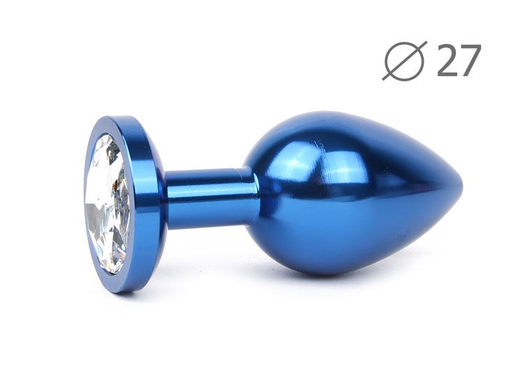 Коническая синяя анальная втулка с прозрачным кристаллом - 7 см.