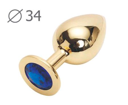 Коническая золотистая анальная втулка с синим кристаллом - 8,2 см.
