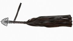 Коричневая плеть-флогер с витой ручкой в виде короны - 62 см.