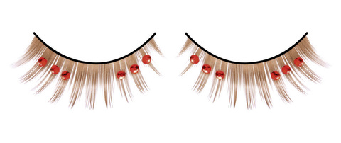 Cексуальные бежевые ресницы ручной работы, укороченные у внутреннего края, с красными кристаллами. Идеальны для выхода, привлечения внимания и флирта. В комплект входит клей для легкого и комфортного прикрепления ресниц.