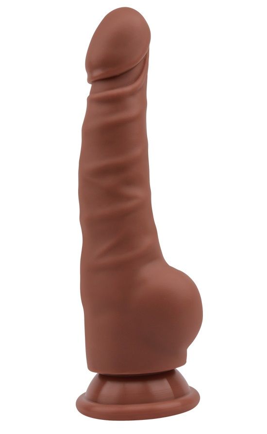 Реалистичный фаллоимитатор коричневого цвета на присоске с ярко-выраженной головкой. Необычайно приятный, рельефный, выполненный из силикона, передающий эффект мягкой реалистичной текстуры кожи, не имеет швов. Рабочая длина - 14,5 см.
