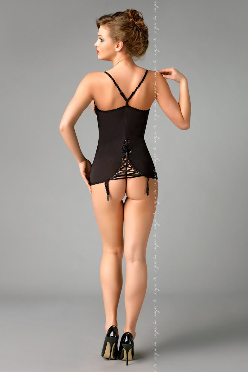 Коротенькая облегающая сорочка Carla с открытым лифом. В комплекте: сорочка, трусики-стринги.