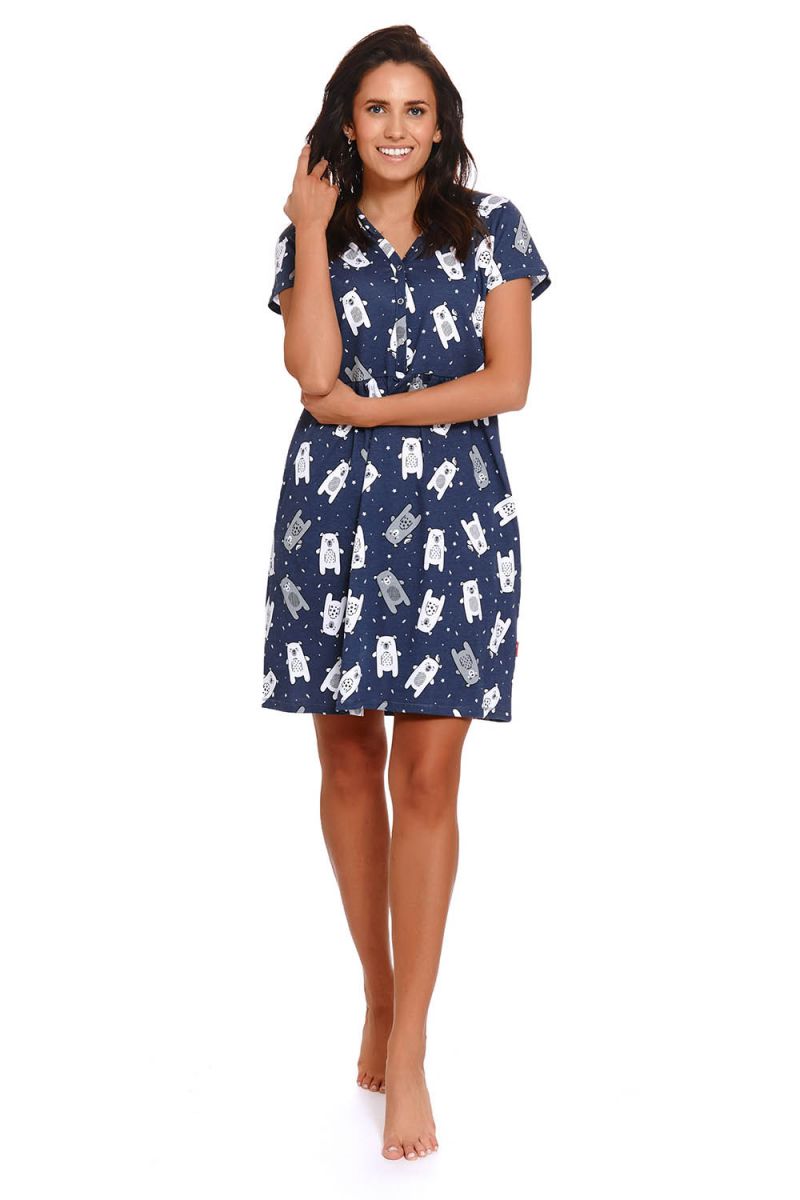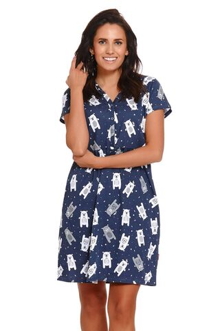 Очаровательная сорочка выполнена из принтованного хлопкового полотна высшего качества. Модель свободного кроя с V-образным вырезом горловины и планкой на кнопках, в боковых швах удобные карманами. Идеальный вариант не только для сна, но и для домашнего отдыха.