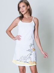 Трикотажная туника на бретельках из однотонной ткани с принтом впереди.