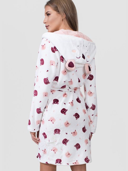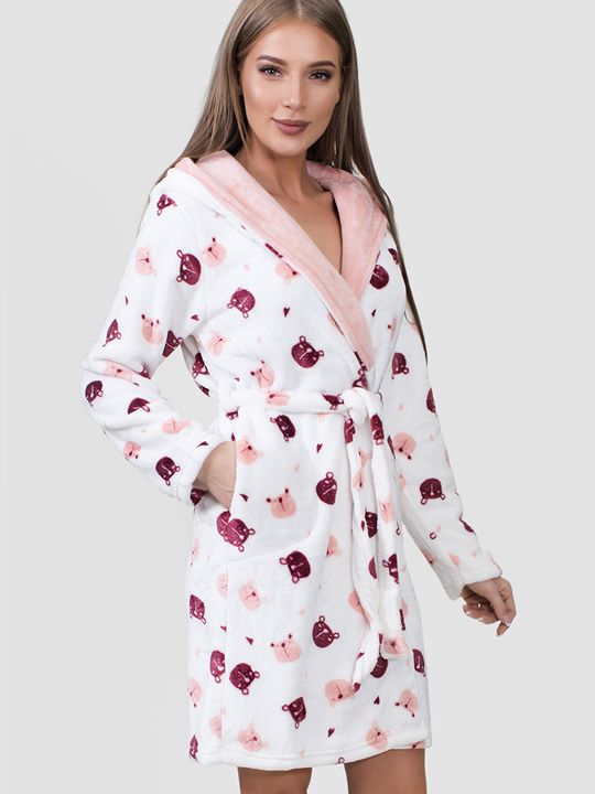 Халат из микрофибры с капюшоном, внутри с отделочной тканью, с длинным рукавом на запахе.