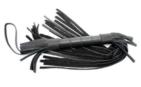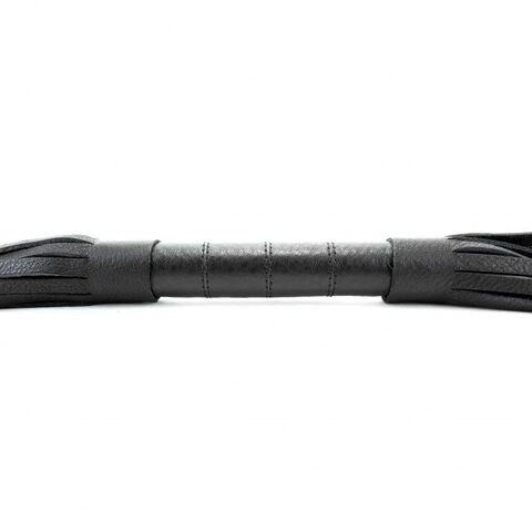 Аккуратная черная плетка, изготовленная из натуральной кожи. Имеет жесткую ручку, также покрытую кожей. Имеется петля для удобного использования плети. Плеть разогреет страсть в любой БДСМ игре. Длина ручки - 18 см.