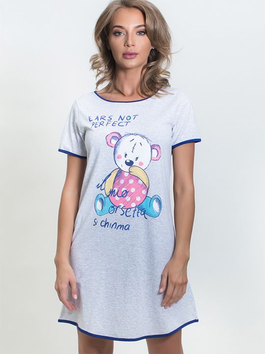 Трикотажная туника с коротким рукавом, из однотонной ткани, с принтом впереди и яркой окантовкой.
