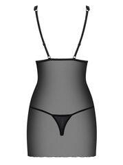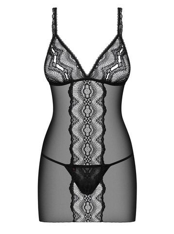 Короткая облегающая сорочка Lucita. Выполнена из полупрозрачного тюля и тонкого узорчатого кружева. Мягкие чашечки украшены декоративной тесьмой. Бретели регулируются по длине. Трусики-стринги входят в комплект. В комплекте: сорочка, трусики-стринги.