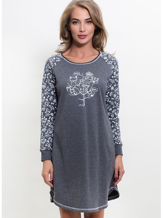 Трикотажная байковая туника с длинным рукавом, покрой - реглан с рисунком и однотонными полочками, впереди с принтом.