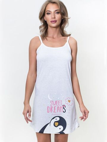 Трикотажная туника на бретельках, из однотонной ткани, с принтом впереди.