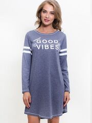 Трикотажная туника из однотонной ткани с принтом впереди и отделкой на рукавах.